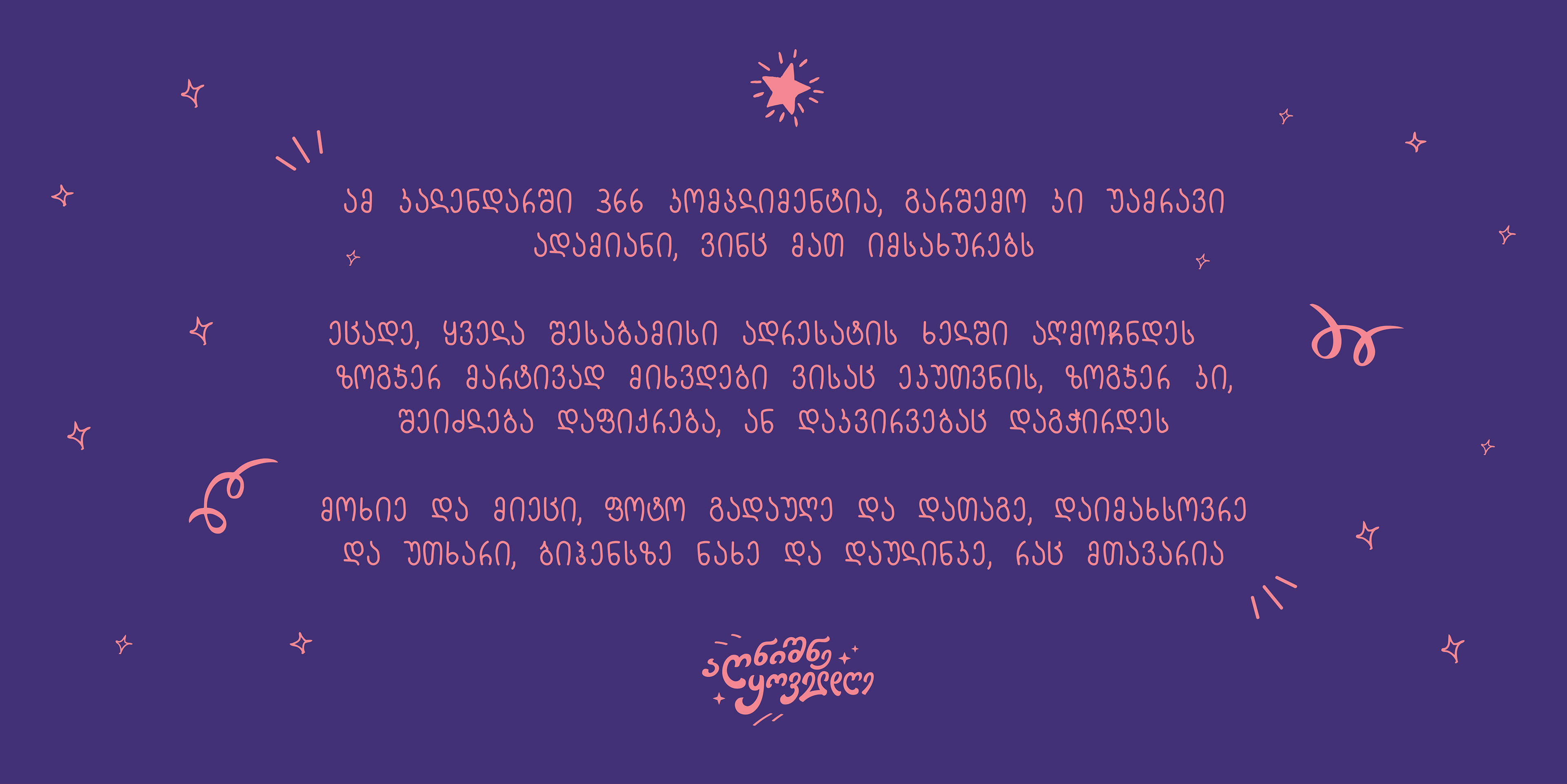 Graphic Designers: Giorgi Patarkatsashvili; Ani Malazonia; Nino Mikadze; Niko Gobiani