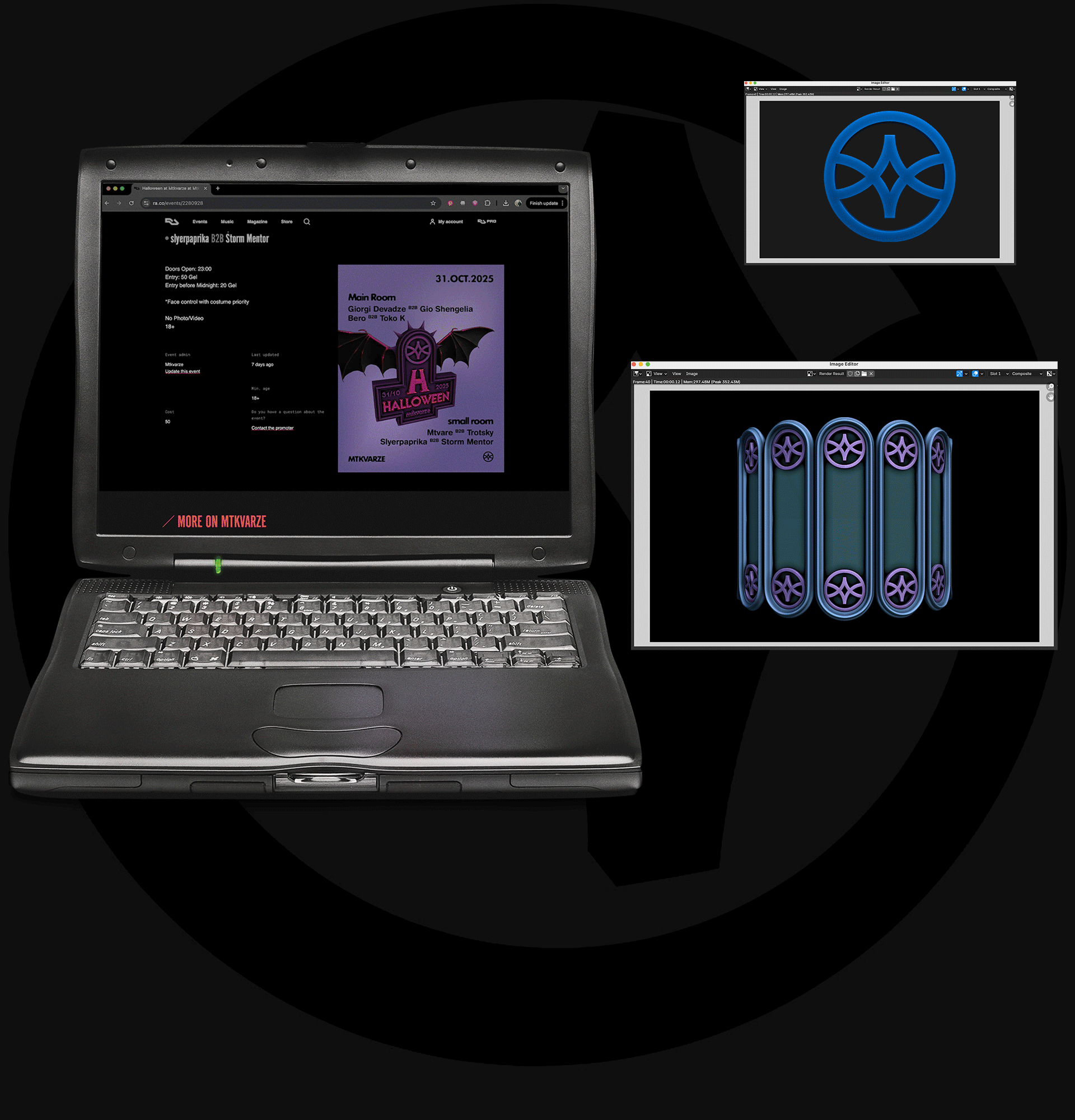 MTKVARZE logo was inspired by the engraved symbol on the arcs of the building where the club is located. This building was constructed many years ago, and the presence of the symbol was a remarkable detail that took my attention. After researching, I discovered it is a witch’s knot, an ancient protective symbol, which represents: the unity of the four elements-earth, air, fire, and water, eternity, and the connection between the spiritual and physical worlds.